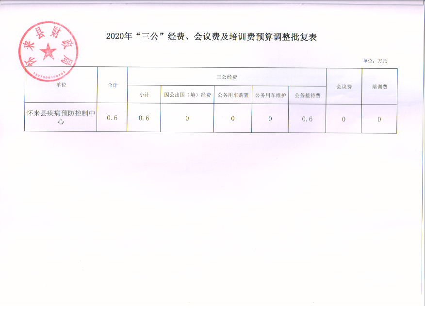 怀来县疾控中心2020年三公经费、会议费及培训费预算调整批复表.png